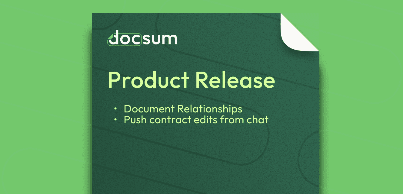 Every contract tells part of a story. An MSA sets the terms, an SOW defines the work, and an amendment adjusts the deal. With Document Relationships, Docsum now understands these connections the way your team does—letting you see the full context behind any agreement and the true, composite state of any deal. Combined with AI-powered editing directly in Word, this release makes Docsum a smarter, more connected platform for managing your entire contract lifecycle.